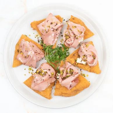 burrata pugliese, mortadella, granella di pistacchio di Bronte, Olio evo
